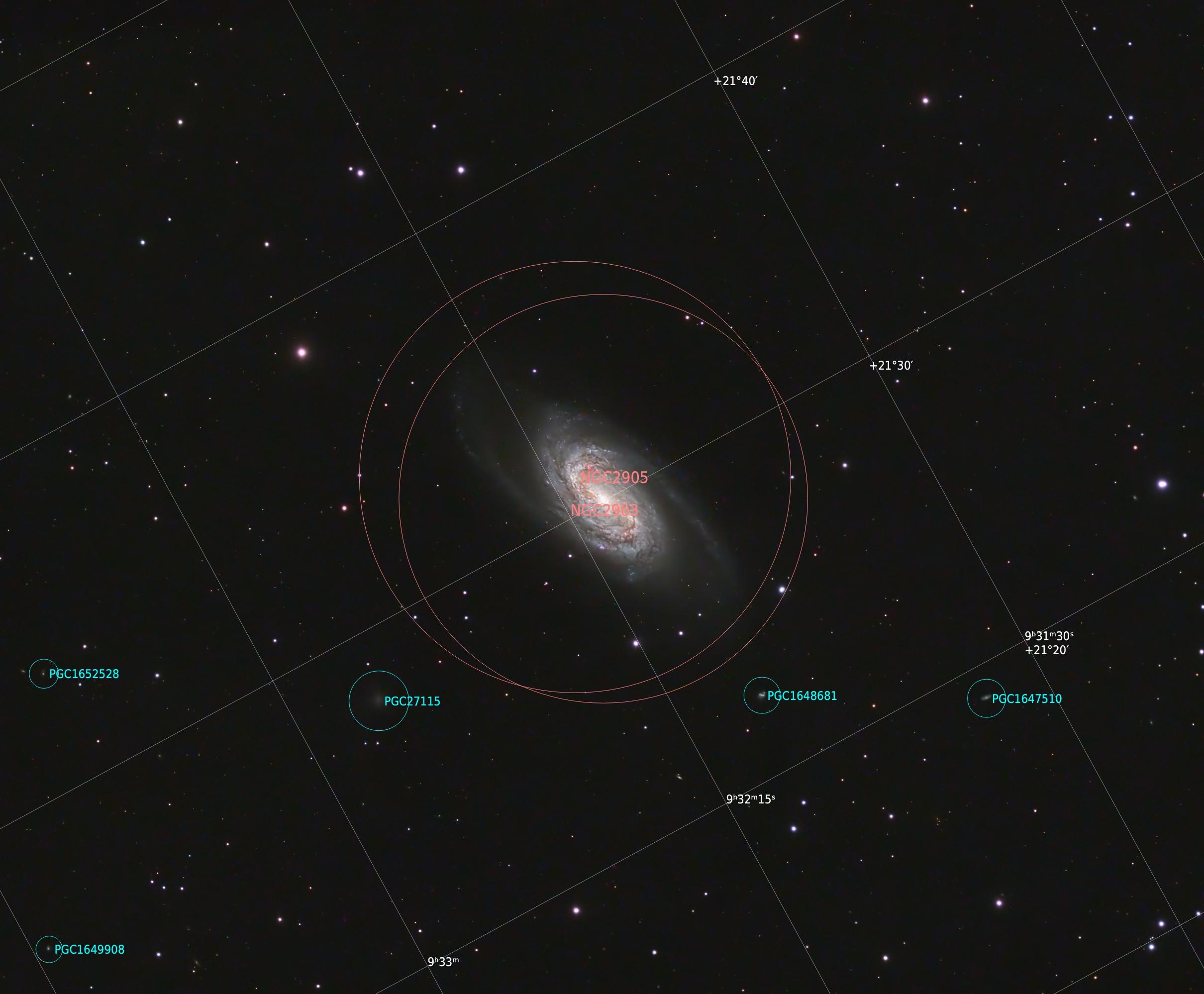 Many astronomers consider NGC 2903 the best and brightest galaxy that isn't included in the famous Messier list and are surprised Messier himself didn't include it in his catalogue. It is very photogenic and brighter than several other galaxies that are included in Messier's list such as M65 and M66. It is located in Leo to the right of the "sickle" of Leo and is about 30 million light years distant.