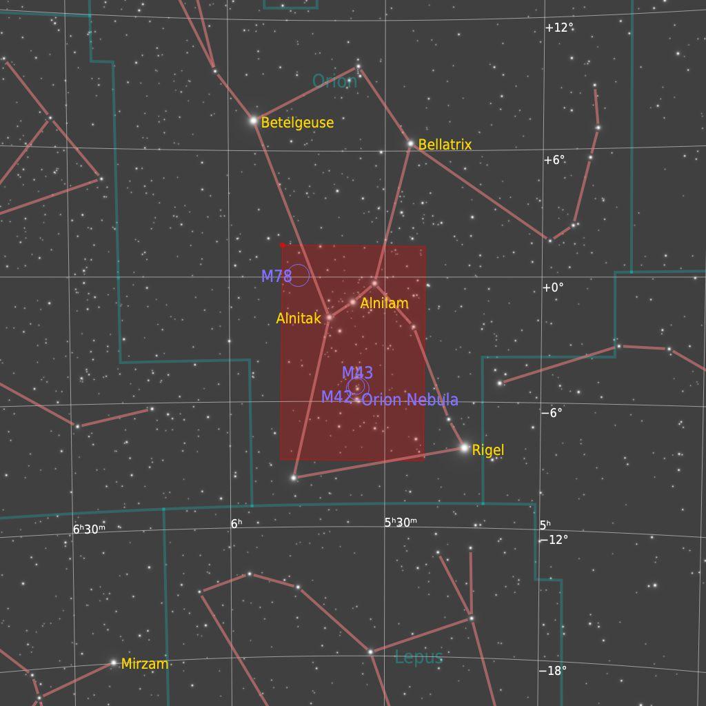 Captured over two nights 20th and 23rd January 2023 when Orion was high to the south. From my back yard in Saxondale, Nottinghamshire - suburban, Bortle 4-5.