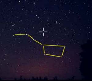 To the left is a zoomed in view of the Deep Field. The HDF is located just above the middle star that is one third of the way up from the bottom of the image.