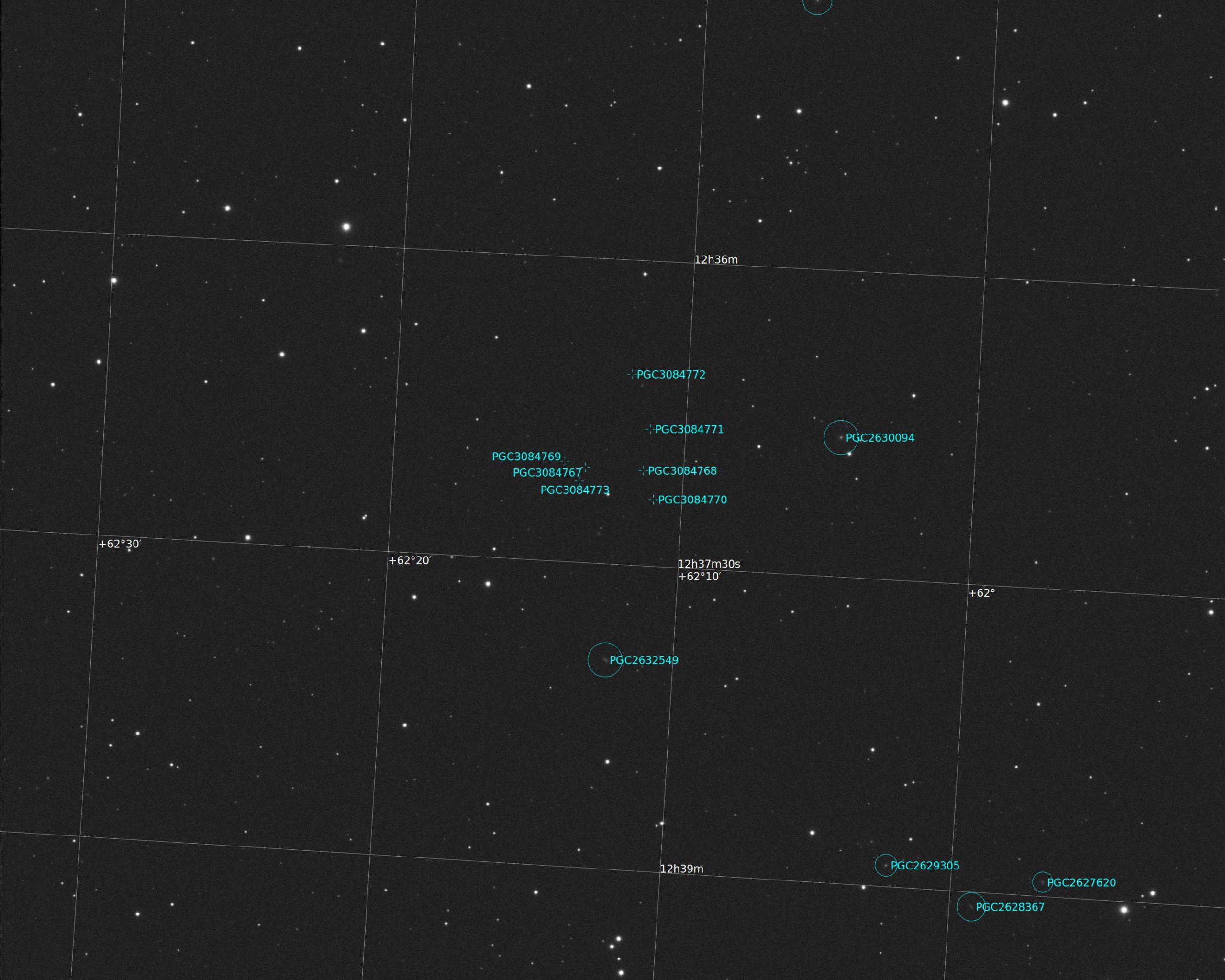 There are many extremely remote and faint fuzzy galaxies across this entire image. I then plate solved this image in PixInsight above to give me the galaxies surrounding the HDF as indicated on the left. Note the PGC galaxies. I used these to zoom in on the Hubble Deep Field area.