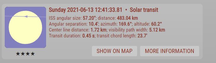 The ISS moves much more quickly than the slowed down image would suggest. It crosses the disk of the sun in only about 2/3 of a second. Literally blink and you will miss it. I started the image capture about 30 seconds ahead of time to ensure the camera is running at a high rate prior to the ISS' arrival and to account for any error in the ISS' arrival calculations. As it happens the ISS transit finder tool https://transit-finder.com/ is accurate to the split second. By the way, an iPhone connected to a 3/4G network is accurate to within a few thousandths of a second.