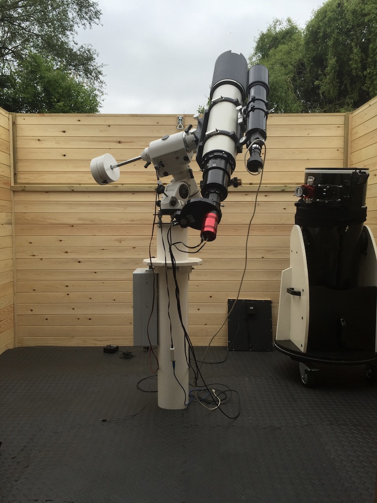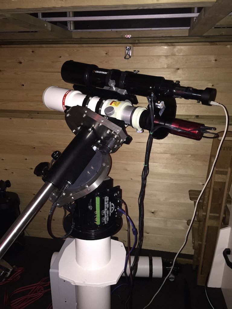 Almost immediately upon opening - literally within the hour - I had it mounted on my Skywatcher NEQ6 mount. I have since repurposed this mount and bought a MESU 200 but the NEQ6 held the TEC 140 with no problems at all. I think you guys in North America call this mount the Atlas mount. I installed my guide-scope onto the mount and a Dew Shield. This is not my current telescope/mount configuration but was the one I used at the time in April 2016 (I now have the TEC140, FSQ85 and Celestron C925 all simultaneously mounted).